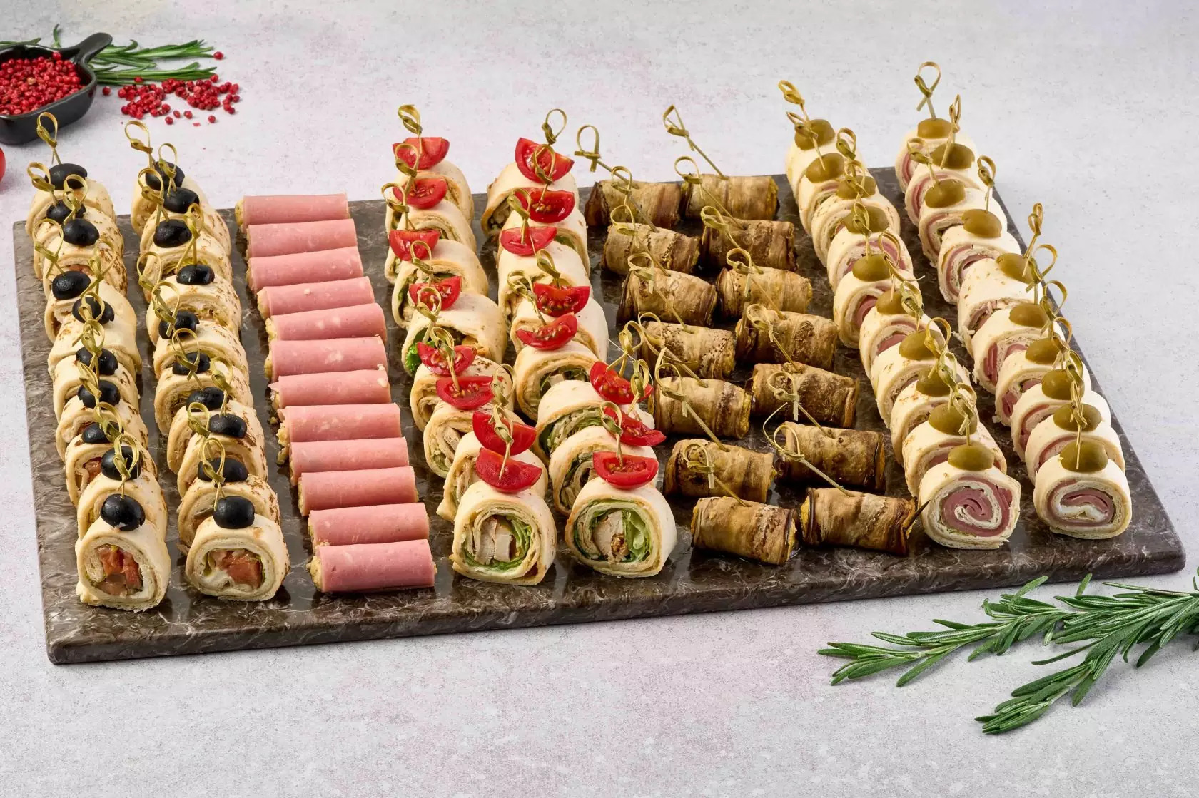 Чтобы фуршет был разнообразным и интересным, к мини-рулетикам стоит добавить другие закуски, которые будут дополнять их по вкусу и текстуре. Это могут быть: