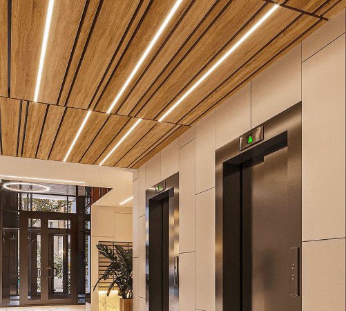 - Разнообразие дизайнерских решений: Благодаря широкому выбору материалов (дерево, пластик, металл), цветов и размеров, реечные потолки подходят для самых разных интерьеров – от классики до модерна. Можно создать как однотонный, так и многоуровневый дизайн.